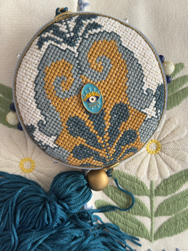A selection of one of a kind hand made charm in round 🧿or eye shaped design.